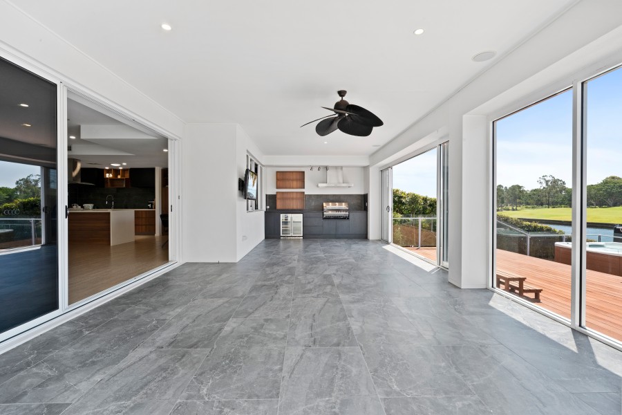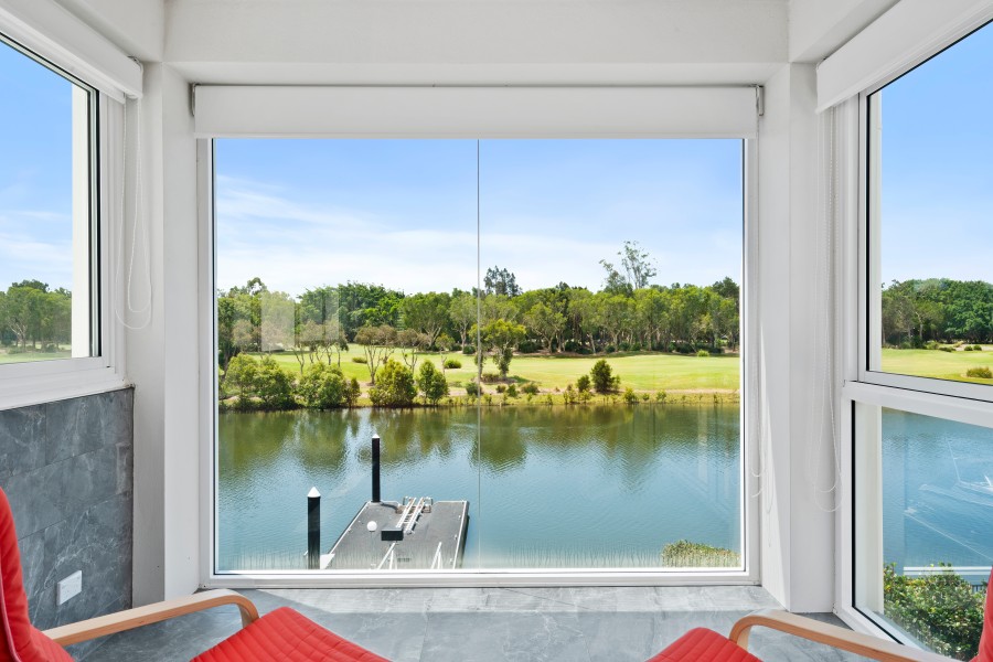 - A luxurious master suite with an en-suite and sunroom overlooking the water and golf course