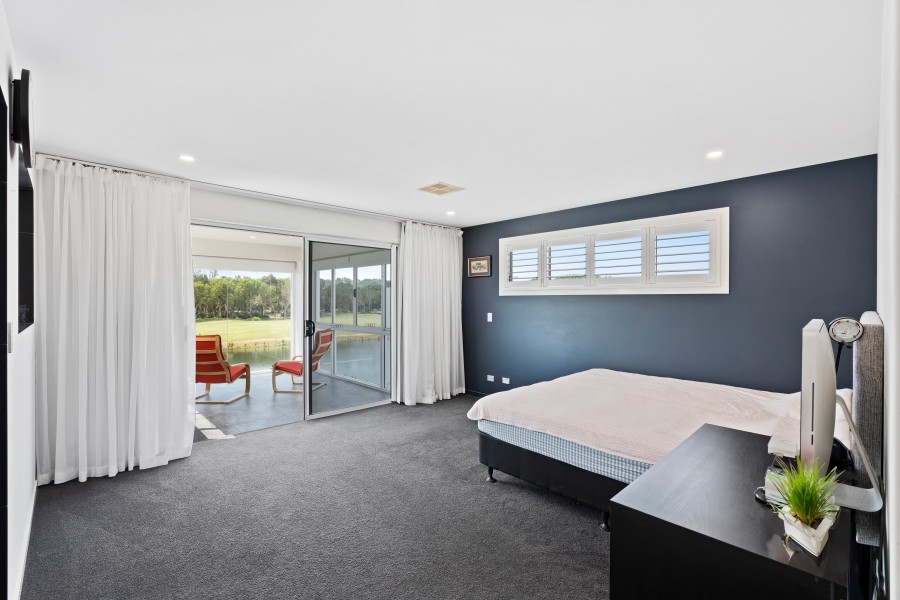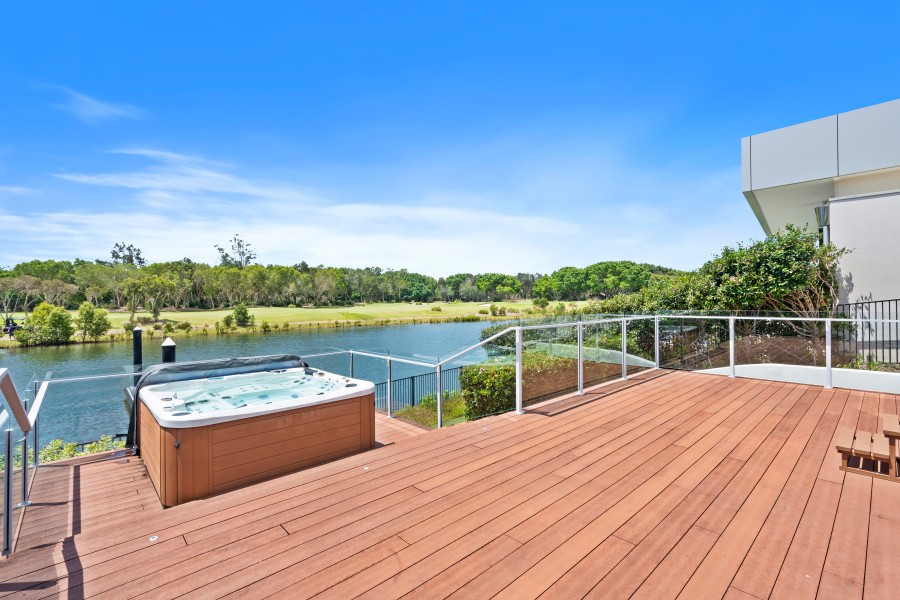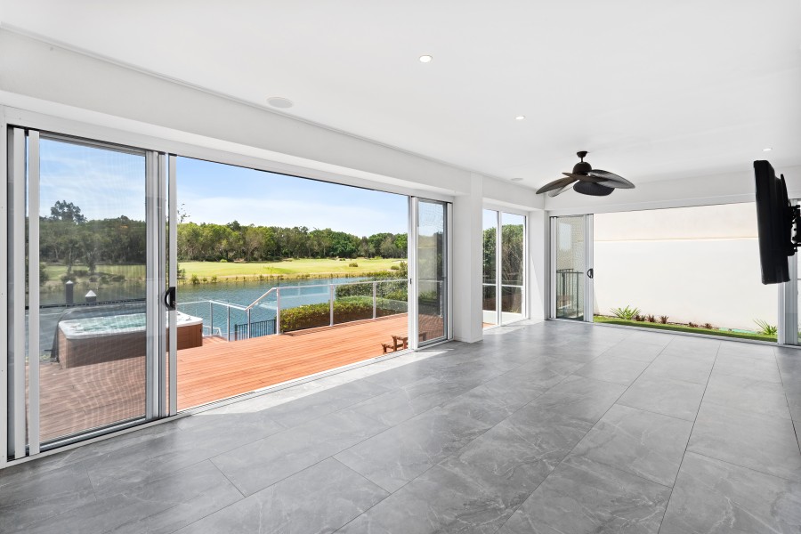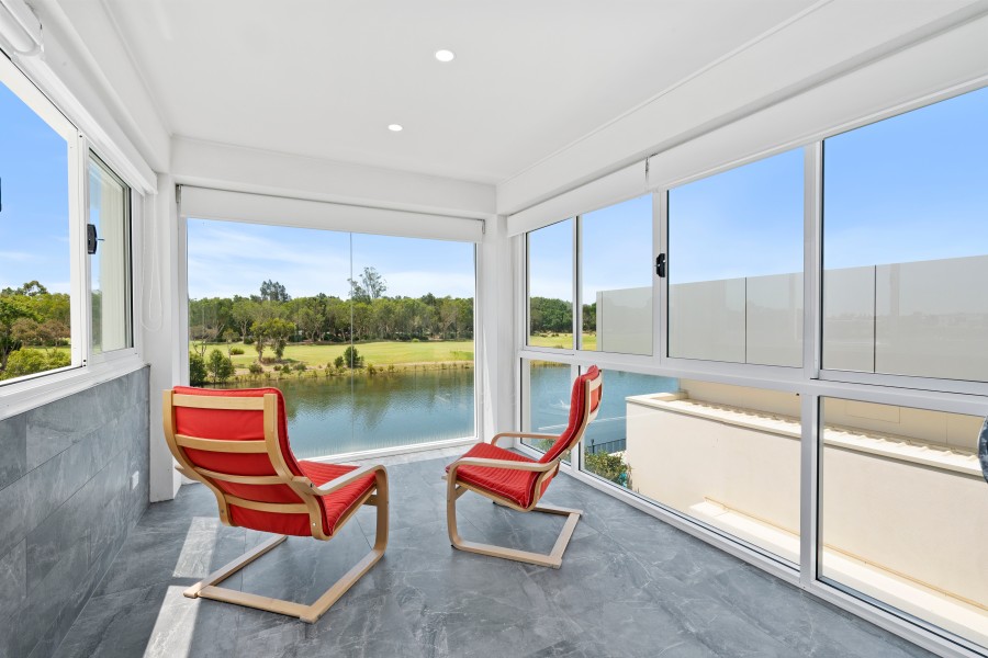 - A luxurious master suite with an en-suite and sunroom overlooking the water and golf course